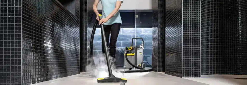 Під час подачі пари Karcher використовує спеціальну систему контролю потоку, яка розподіляє тиск рівномірно, не допускаючи «плювків» води чи перегріву поверхні. Це гарантує ідеальний баланс між ефективністю й безпекою.