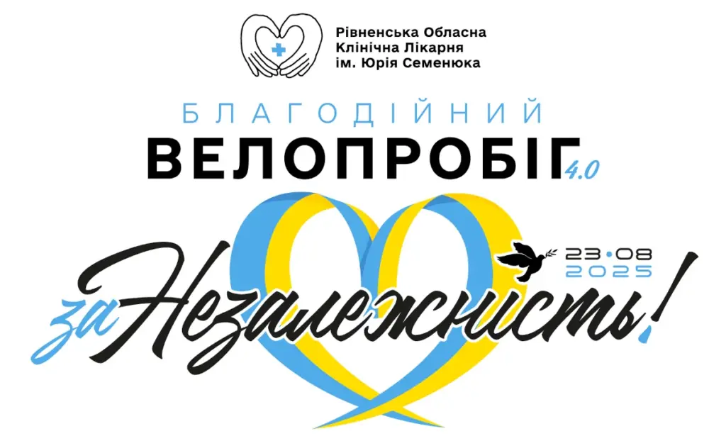 23 серпня 2025 року Рівненська обласна клінічна лікарня імені Юрія Семенюка запрошує мешканців та гостей міста долучитися до щорічного Благодійного Велопробігу «За Незалежність!». Захід пройде вже вчетверте та традиційно об’єднає медиків, партнерів і небайдужих громадян задля підтримки Збройних сил України.