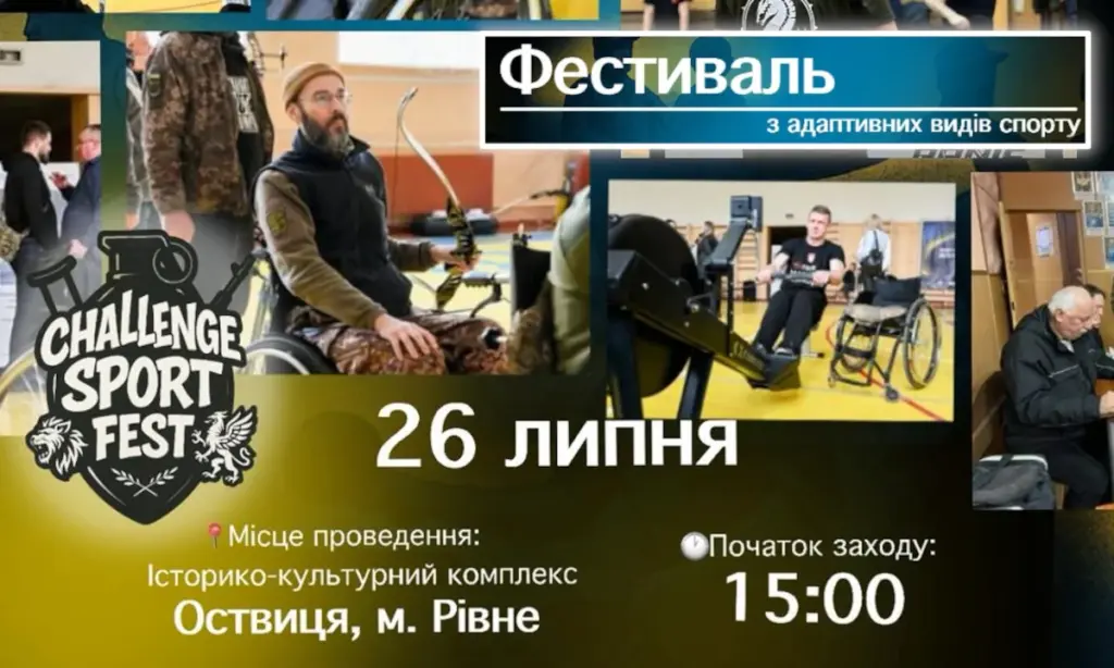 26 липня о 15:00 на території історико-культурного комплексу «Оствиця» в Рівному відбудеться фестиваль адаптивного спорту, присвячений пам’яті всіх полеглих військовослужбовців Рівненщини. Ця подія об’єднає силу спорту, вдячність за подвиг і підтримку родин та ветеранів.
