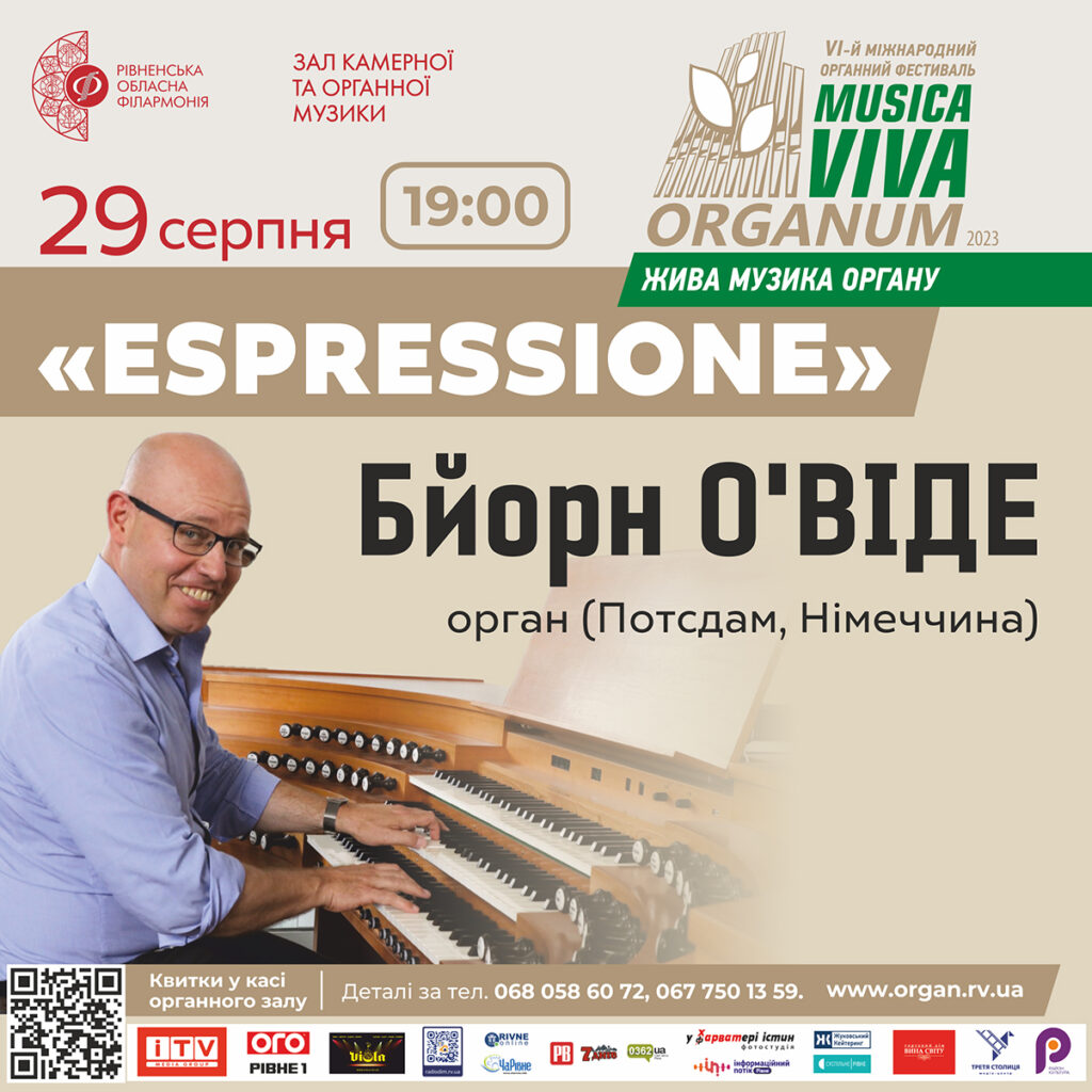 Концерт в рамках органного фестивалю «MUSICA VIVA ORGANUM» відбудеться в Рівненській обласній філармонії. Бйорн О’ВІДЕ – орган, Німеччина (Потсдам)