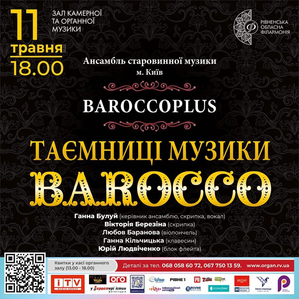 Слово «бароко» ймовірно походить від португальського perola barroca – перлина химерної форми. Барокова музика дивує багатством образів та розмаїттям почуттів. Ансамбль старовинної музики епохи бароко BAROCCOPLUS (м. Київ) запрошує гостей Рівненської обласної філармонії разом з ними розкрити ТАЄМНИЦІ МУЗИКИ BAROCCO.
