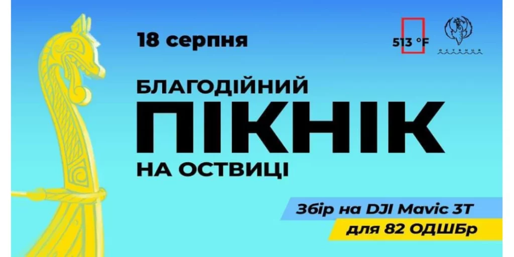 Пікнік відбудеться 18 серпня. Кожен зможе чудово провести час та долучитися до важливої справи – збору коштів на Mavic 3T для 82 ОДШБр.
