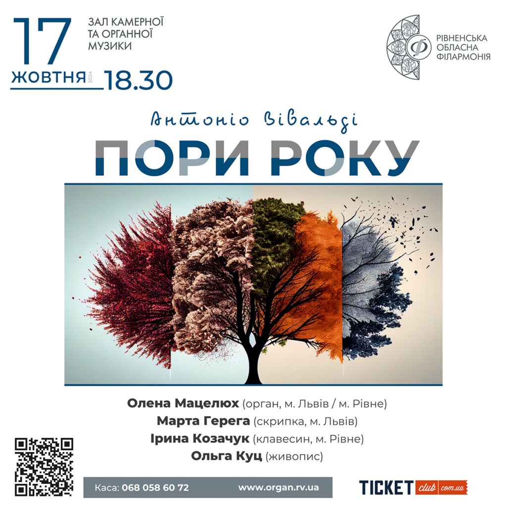Пори року Вівальді — справжній бестселер у світі музики. Почути його наживо можна в Органному залі Рівного.