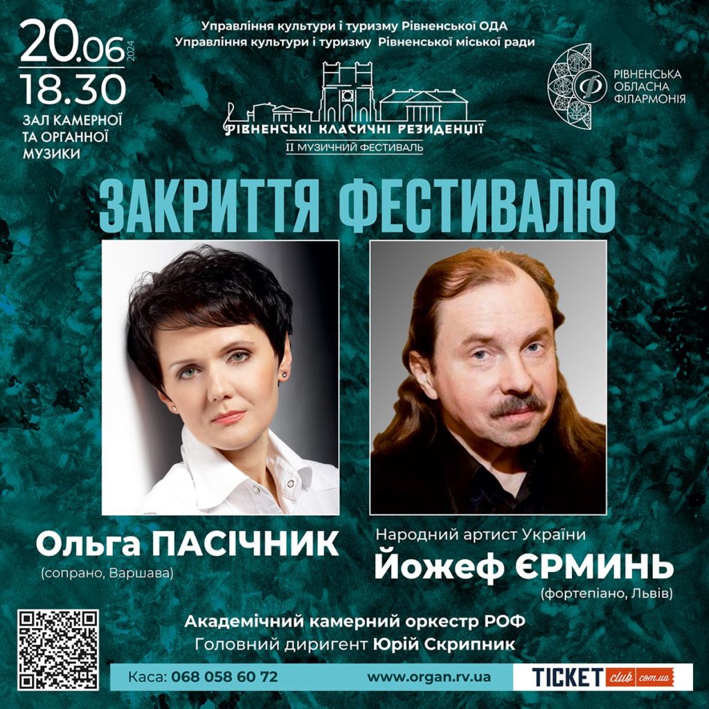 Закриття фестивалю “Рівненські класичні резиденції” 20 червня (четвер) о 18.30.