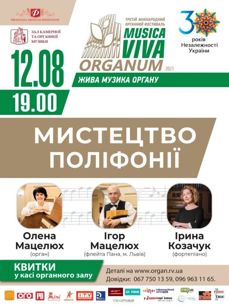 Три дуже яскраві, але водночас і різні звучання усіх шанувальників класичної музики чекають 12 серпня в Органному залі на концерті « Мистецтво поліфонії».