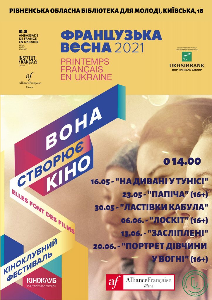 У молодіжній бібліотеці відбуватиметься показ французьких фільмів програми «Вона створює кіно» у межах мистецького фестивалю «Французька весна в Україні».