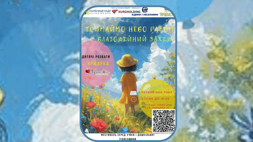 До Дня захисту дітей, 1 червня 2025 року, в центрі Рівного відбудеться благодійний захід під назвою «Тримаймо небо разом».