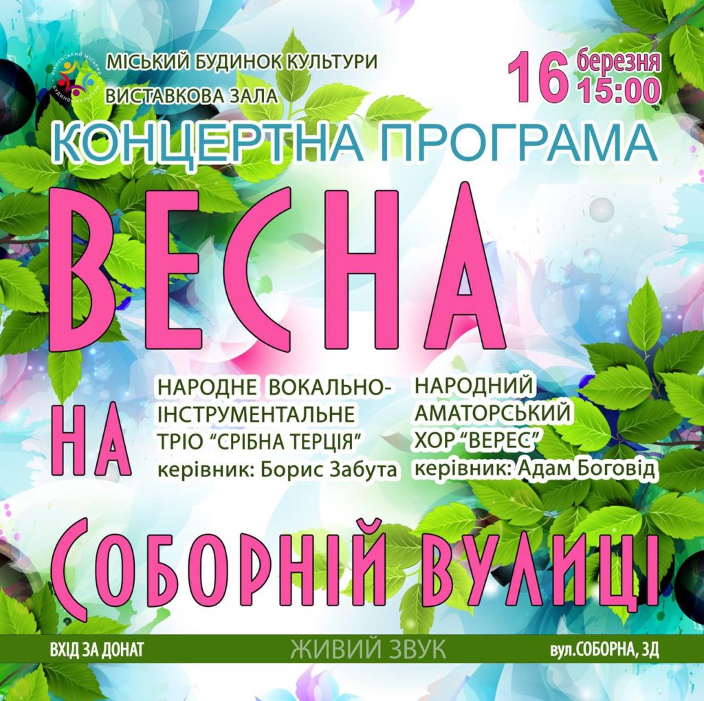 – народне вокально-інструментальне тріо «Срібна Терція» під керівництвом заслуженого працівника культури України Бориса Забути. Віртуозна гра та спів, що дарують весняний настрій!