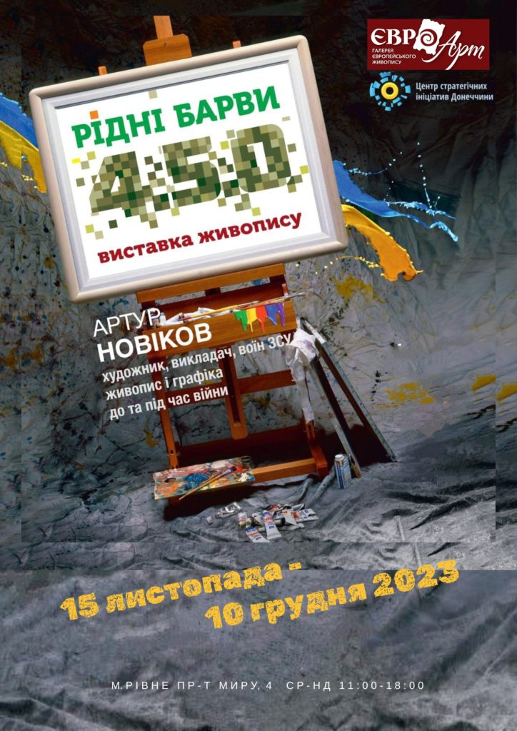 Персональна виставка Артура Новікова «РІДНІ БАРВИ 4.5.0» триватиме з 15 листопада по 10 грудня 2023 року.