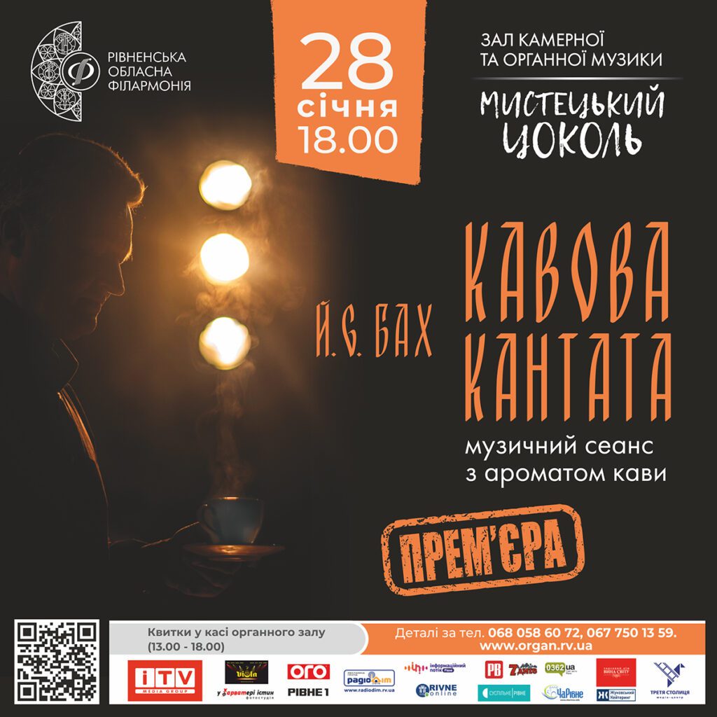 Рівненська обласна філармонія запрошує рівнян включити в свої плани на суботу каву та вишукану музику. 28 січня в мистецькому цоколі органного залу відбудеться концерт «Кавова кантата».