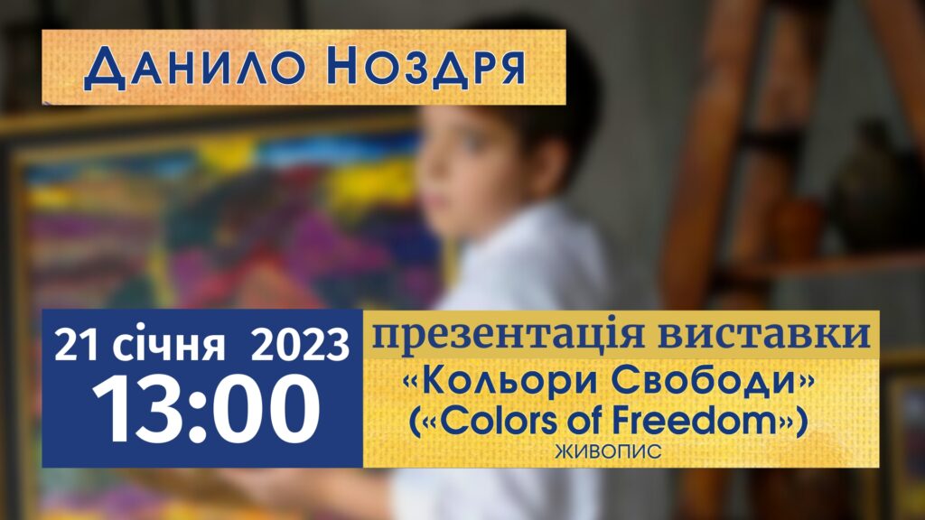 Галерея європейського живопису «Євро-Арт» у рамках свого широкомасштабного проєкту «Євро-Арт» для талановитих» презентує четвертий епізод пересувної виставки картин 13-річного киянина Данила Ноздрі «Кольори свободи/Colors of Freedom».