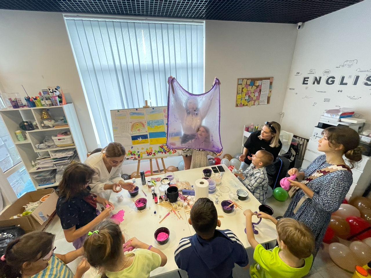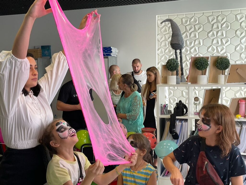 Там були майстер-класи з виготовлення слаймів, аквагрим, солодкий стіл та паперове шоу.