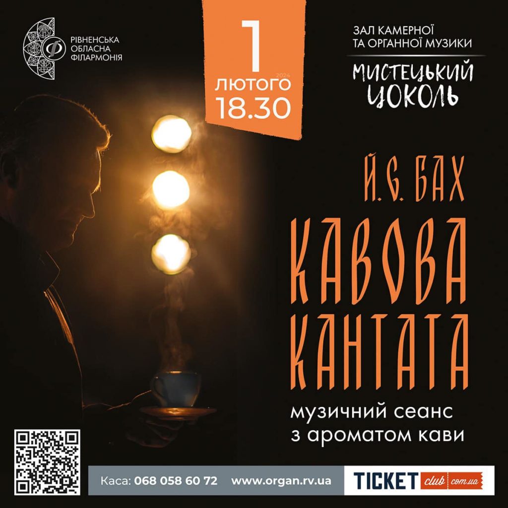 Рівненська обласна філармонія запрошує у мистецький цоколь органного залу у Рівному на музичний сеанс з ароматом кави.