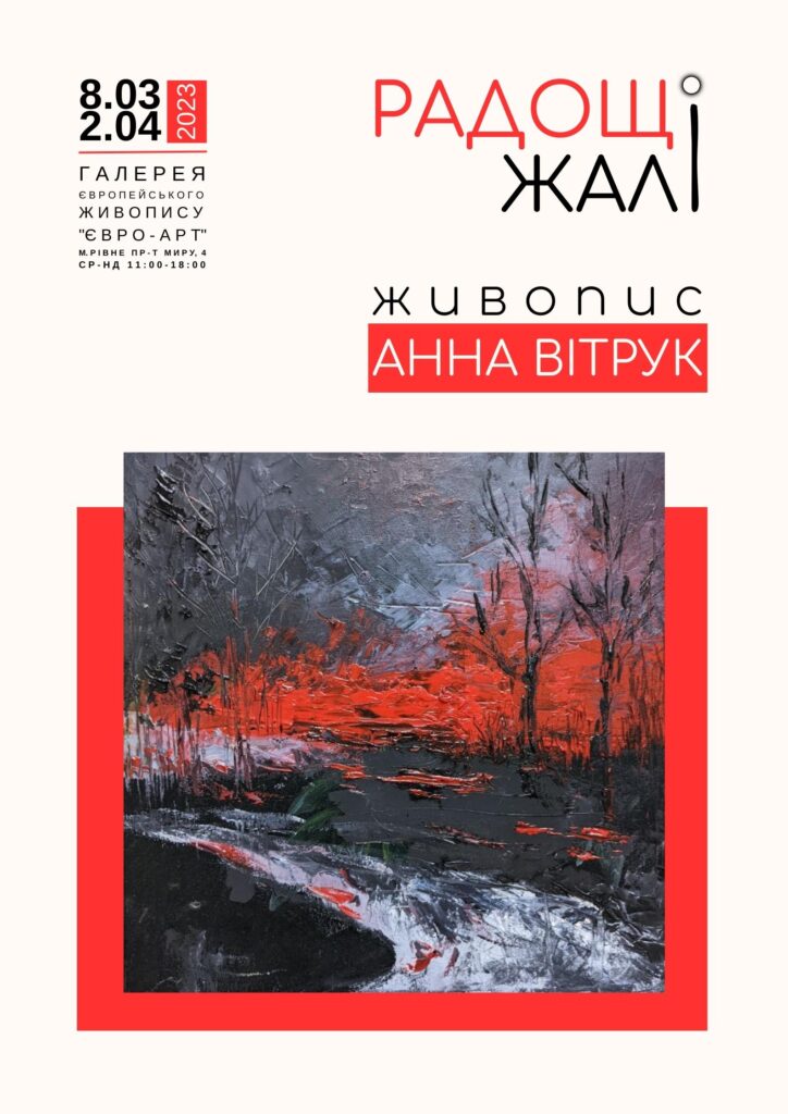 Персональна виставка Анни Вітрук «Радощі і жалі» триватиме з 8 березня по 2 квітня 2023.