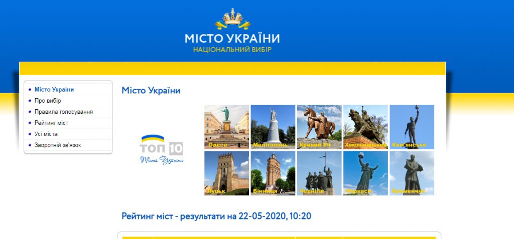 Станом на 22 травня найвищий рейтинг (понад 15 тис голосів) має Одеса.