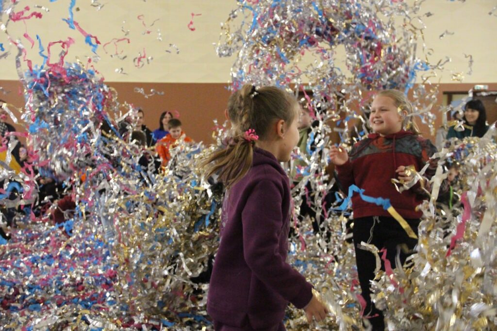 Різнокольоровий сніг, солодкі подарунки та гарний настрій отримали діти-переселенці від волонтерів громадської організації «Рівне Разом» і шоу-студії «M Рarty» під час свята Миколая у МПК «Текстильник» 18 грудня.