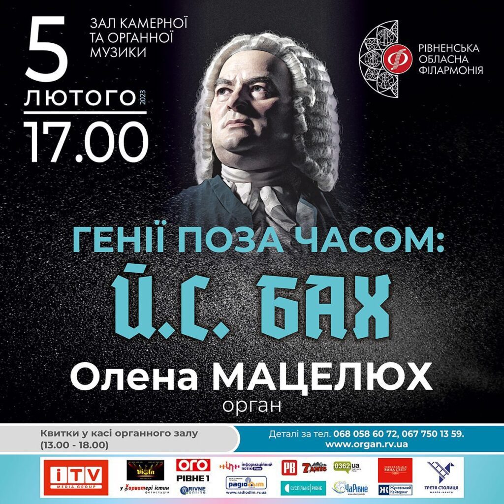 Рівнян запрошують на концерт органної музики, який відбудеться о 17 годині 5 лютого в залі камерної та органної музики. У програмі – твори Й. С. Баха.