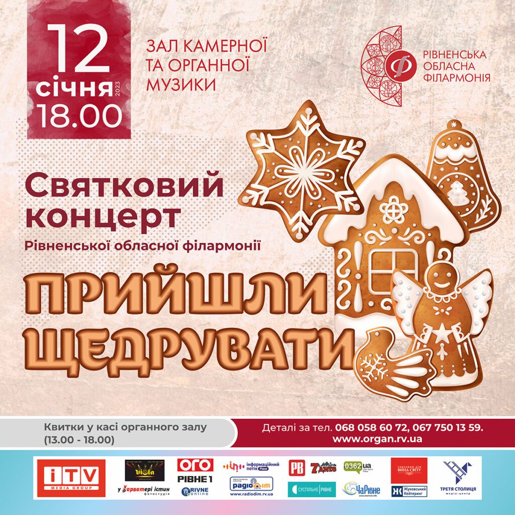 Рівненський зал камерної та органної музики запрошує на святковий концерт «Прийшли щедрувати». Дійство відбудеться 12 січня о 18 годині.