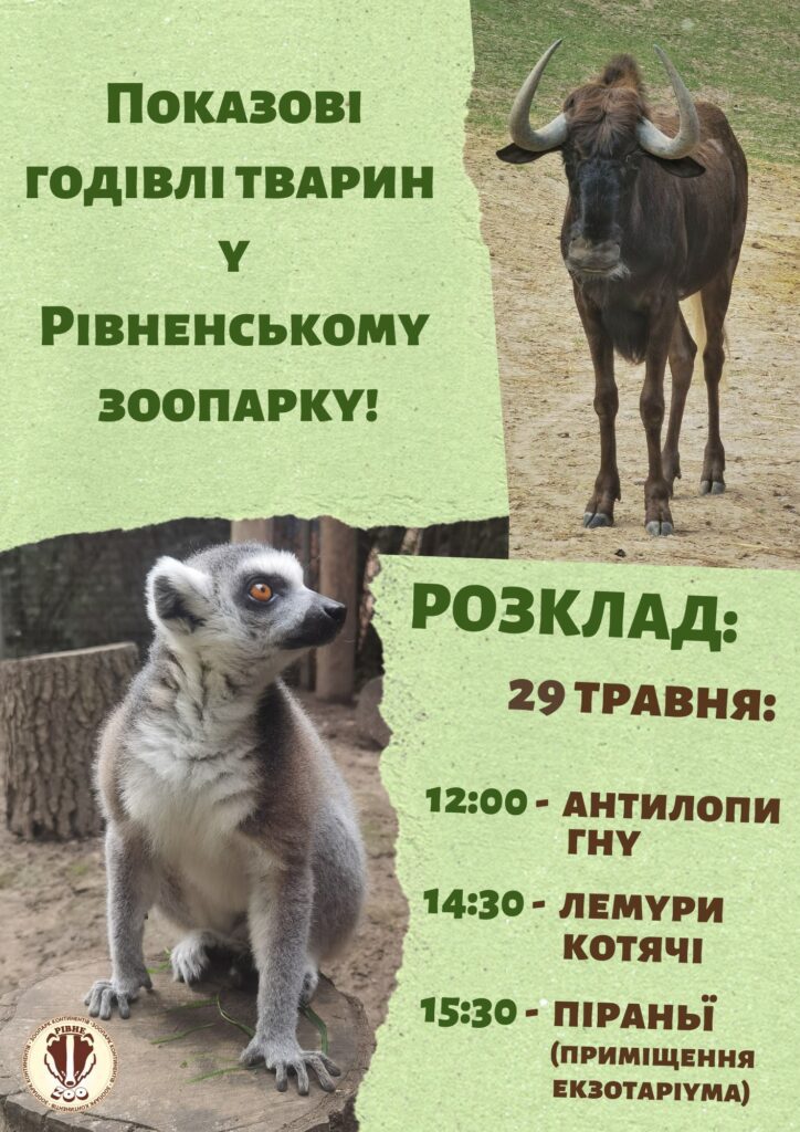 Сьогодні, 29 травня, рівнян та гостей міста запрошують на показові годівлі тварин у Рівненський зоопарк, аби дізнатись чимало цікаво про його мешканців.