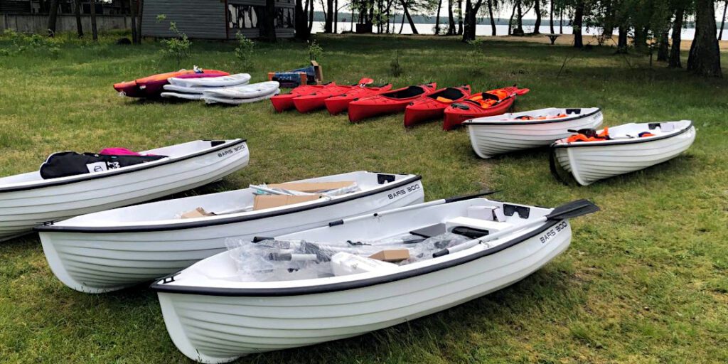 Це: п’ять водних велосипедів, шість каяків, п’ять сапбордів, п’ять човнів, дві дошки для віндсерфінгу, комплекти рятувальних жилетів; м’ячі для волейболу, баскетболу, пляжного футболу, ласти та маски для плавання, ракетки та воланчики для бадмінтону, ракетки та м’ячики для пляжного тенісу, скакалки, великі вуличні шахи, набори шахів і шашок, палиці для скандинавської ходьби, тенісний і більярдний столи.