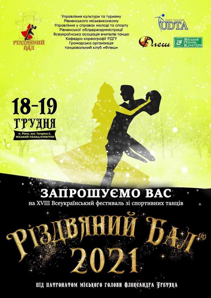 Всеукраїнський фестиваль зі спортивно-бальних танців під назвою «Різдвяний бал 2021» відбудеться в Рівному 18-19 грудня.