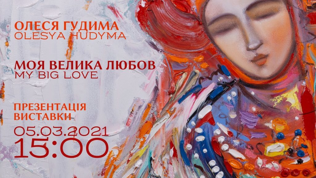 Виставка Олесі Гудими «МОЯ ВЕЛИКА ЛЮБОВ. MY BIG LOVE» триватиме у двох центральних залах галереї «Євро-Арт» з 3 березня по 18 квітня 2021 року.