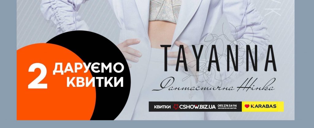 Не пропустіть найбільш чуттєвий вечір сезону 19 березня о 19 годині від фантастичної TAYANNA та отримайте нагоду виграти квиток!