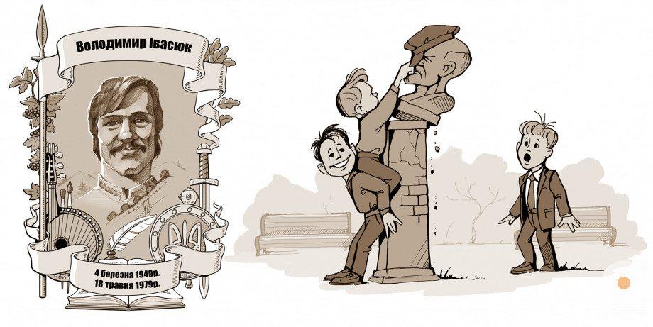 Крім того, як зауважив митець, поширювали там і брошурки на кшталт «Підручника молодого патріота». Це короткий історичний нарис, у якому були фотографії Романа Шухевича з пробитою скронею, Ніла Хасевича, який лежить убитий в криївці, й фотографія Василя Вишиваного в буцегарні Лук’янівського СІЗО.