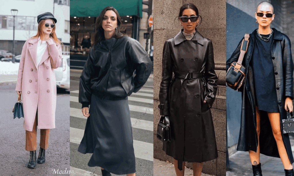 У палітрі переважають глибокі й теплі відтінки: шоколадний, графітовий, карамельний та пісочний. Водночас дизайнери пропонують додати яскравих акцентів — бордовий чи насичений червоний може стати основним акцентом образу. Лакова шкіра й блискучі текстури відсилають до естетики дев’яностих та початку двотисячних.