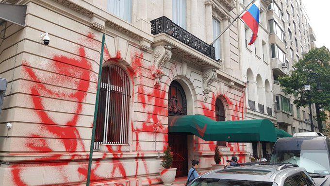 Вчора великі плями червоної фарби вкрили фасад консульства, будівлі в стилі ренесансу у Верхньому Іст-Сайді на Манхеттені, повідомляє агентство новин France-Presse (AFP).