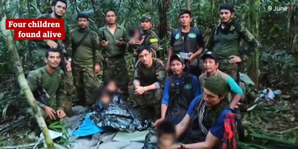 Чотирьох дітей знайшли живими після того, як вони пережили авіакатастрофу та провели майже шість тижнів у джунглях Амазонки в Колумбії.