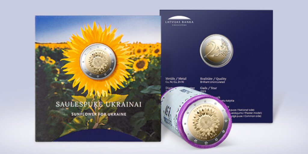 У вівторок, 30 травня, Банк Латвії випустить спеціальну пам’ятну монету номіналом 2 євро, присвячену українським соняшникам – символу миру та свободи.