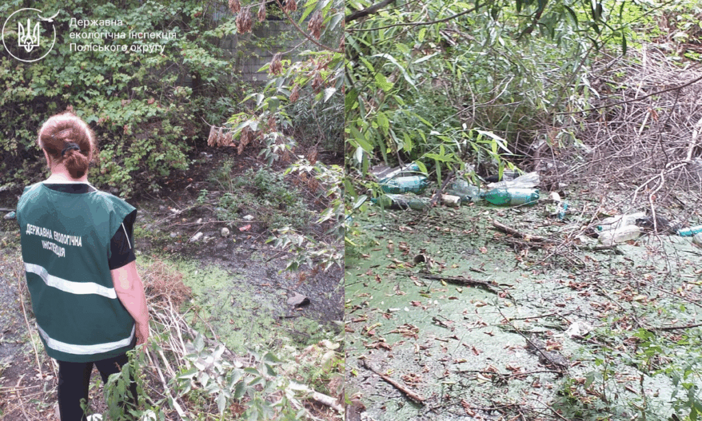 Інспектори виявили засмічення канави побутовими відходами: поліетиленом, пластиком та іншим сміттям.