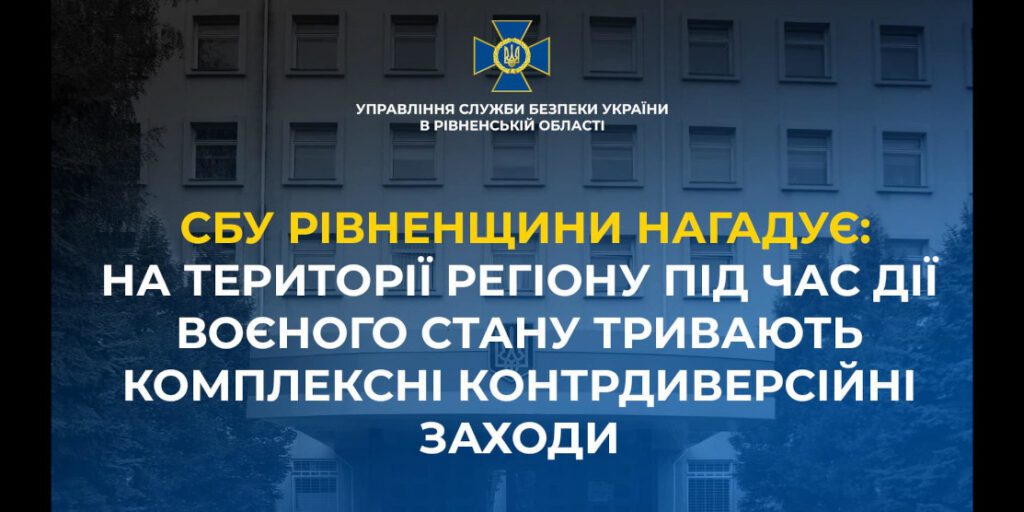 Служба безпеки проводить безпекові (контррозвідувальні) заходи на території Рівненської області. Ці заходи проводяться аби не допустити дестабілізації суспільно-політичної обстановки, вчинення провокацій та будь-яких інших способів розхитати ситуацію в регіоні.