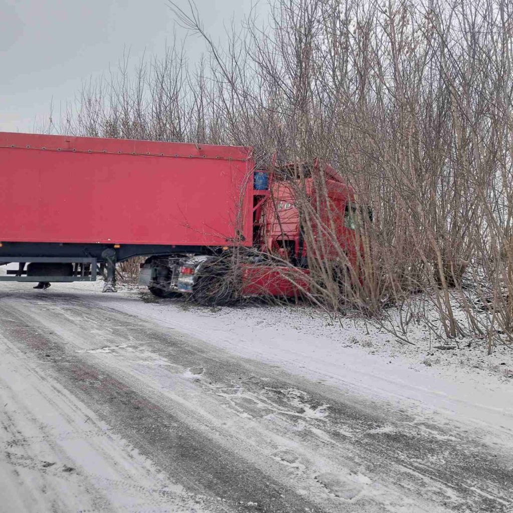 Одну із доріг у Рівненському районі перекрила фура. Водій не справився з керуванням на слизькій дорозі.
