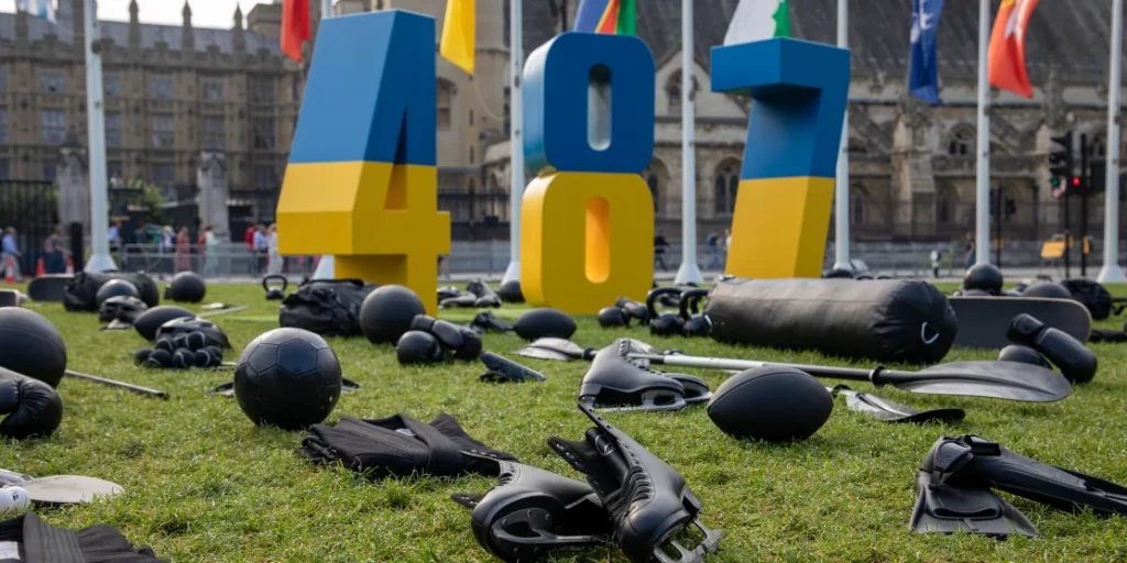 На Парламентській площі в Лондоні було презентовано інсталяцію, присвячена пам’яті українських спортсменів, які загинули внаслідок повномасштабного вторгнення росії.
