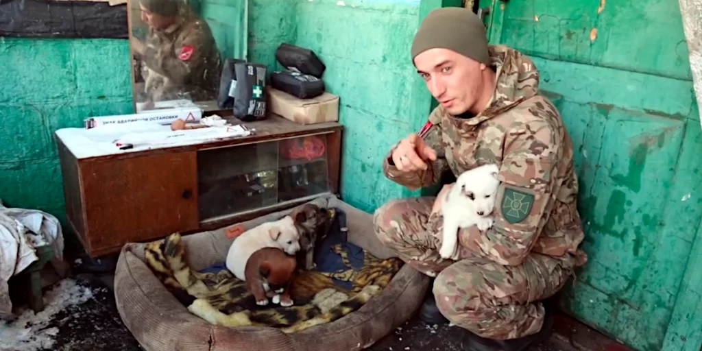 В одній із зон бойових дій на Донеччині чотирилапа подруга прикордонників на прізвисько Рижа народила цуценят і принесла їх захисникам.