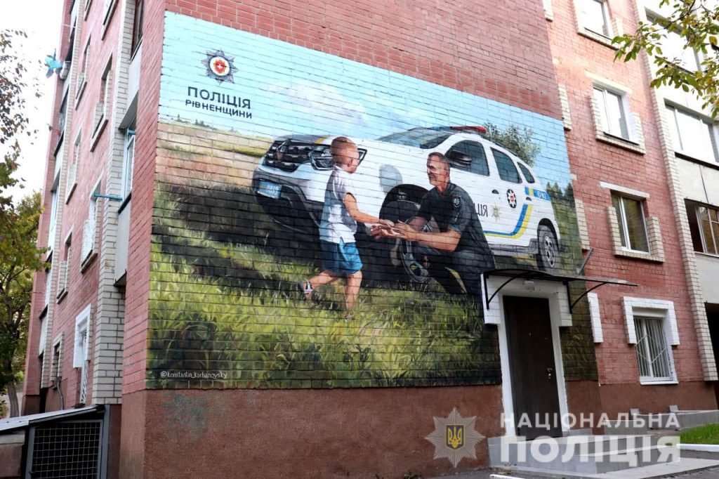 «Хотілося б, аби у житті кожного було якнайбільше позитивних моментів. І йдеться не про якісь глобальні, а про звичні речі, що викликають приємні емоції,— підкреслює начальник поліції області Олексій Камишанський. — І от саме у цьому зображенні є і піклування, і турбота, і захист, і безпека, і любов. Тож, сподіваюся, що такий вуличний живопис додасть яскравих фарб у життя рівнян і гостей міста».