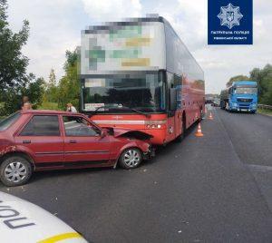 Вчора після обіду плани пасажирів автобусу, що здійснював міжнародні перевезення, були зруйновані дорожньо-транспортною пригодою. Поблизу міста Дубно в їх автобус врізався автомобіль марки Ford Orion.