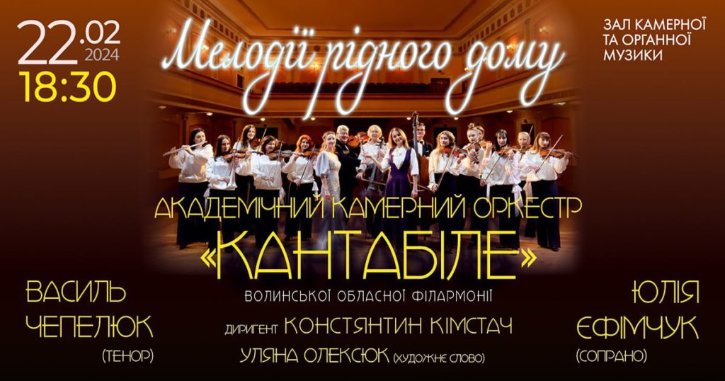 «Мелодії рідного дому» звучатимуть в Органному залі міста Рівне.