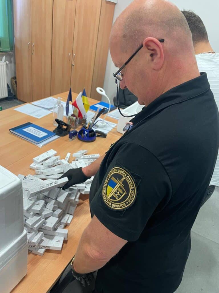 На пункті пропуску «Угринів – Долгобичув» під час огляду мікроавтобуса Mercedes, яким керувала 37-річна жителька Рівненщини, митники виявили 180 шприц-ручок MOTS-c — препарату, що не є лікарським засобом, але використовується для підвищення витривалості, поліпшення обміну речовин та омолодження.