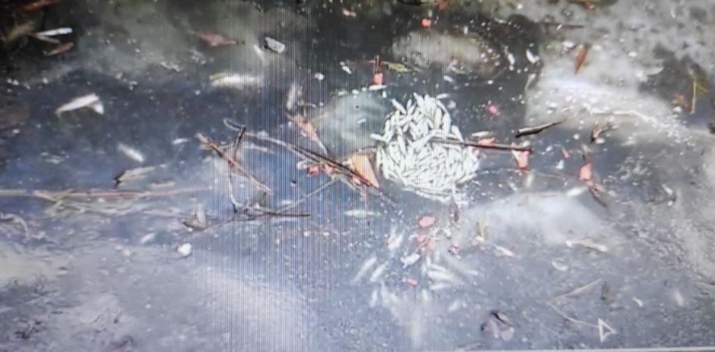 На Лебединці вздовж краю водойми рівняни помітили скупчення мертвої риби невеликих розмірів. Рибу, яка почала спливати на поверхню зняли на відео рівняни і опублікували у ТГ групі Rivne_1283.