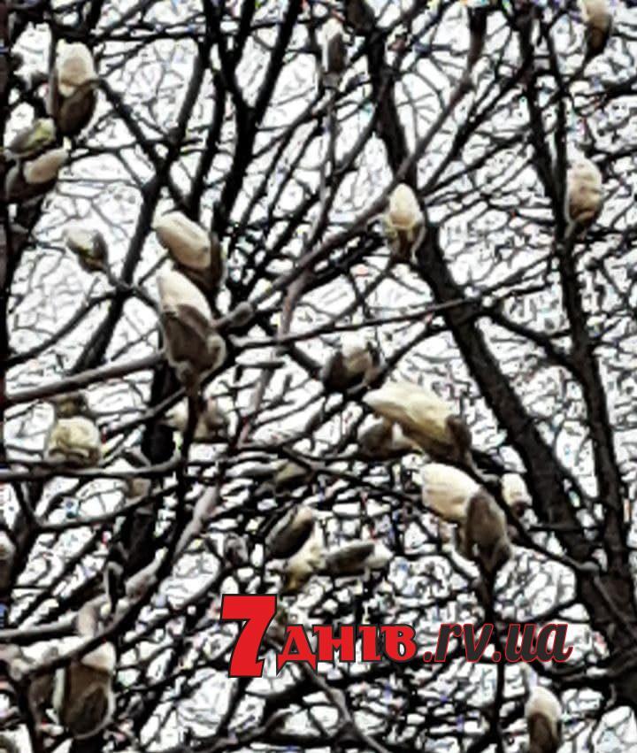 Не дивлячись на холодну погоду у самому центрі Рівного розцвітає вже магнолія.