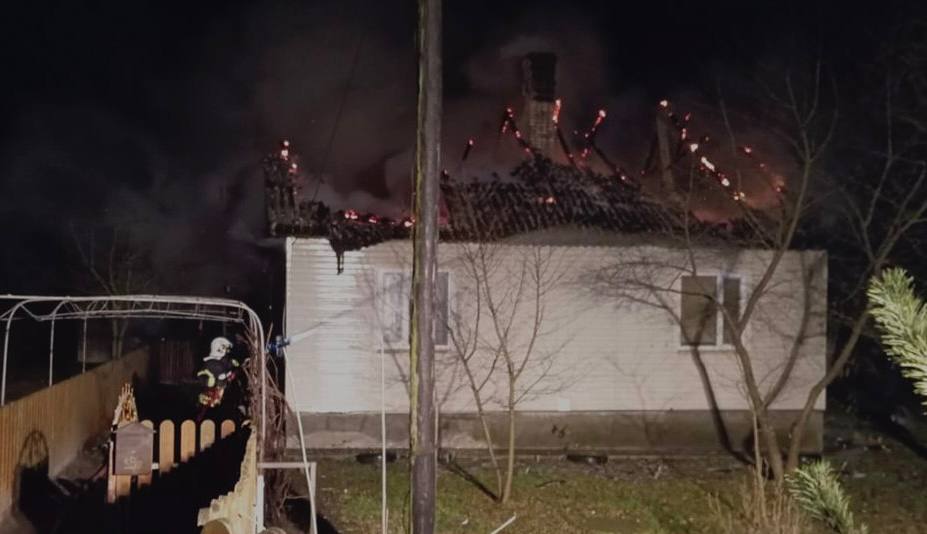 Пожежа сталася сьогодні, 22 грудня, о 03:23 у селі Чучеве Рафалівської територіальної громади. На момент прибуття рятувальників полум’я охопило дах житлового будинку та створювало загрозу для двох сусідніх господарських будівель.