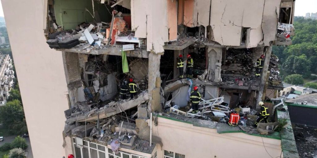 Уламок однієї з ракет влучив у багатоповерхівку у Солом’янському районі, зайнялась пожежа, Загинули 3 людини, 8 – отримали поранення, 2 із них – госпіталізовано. 24 особи врятували співробітники ДСН.