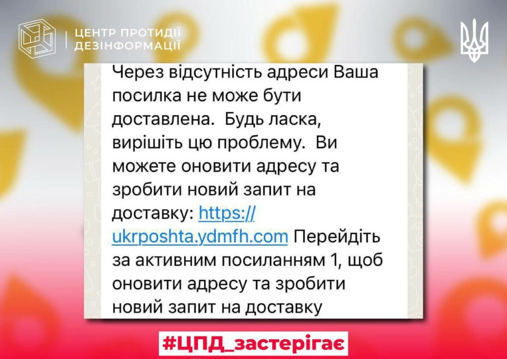 Центр закликає не переходити за сумнівними посиланнями, блокувати адресу відправника, а у разі виникнення питань – звертатися на гарячу лінію «Укрпошти».