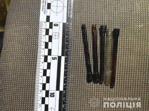 Слідчо-оперативна група під час невідкладного обшуку виявила три сліп-пакети із первітином, марихуану, загальною вагою близько 400 грам, 10 пластикових та дев’ять скляних трубок із нашаруванням коричневої речовини та 25 таблеток невідомого походження.