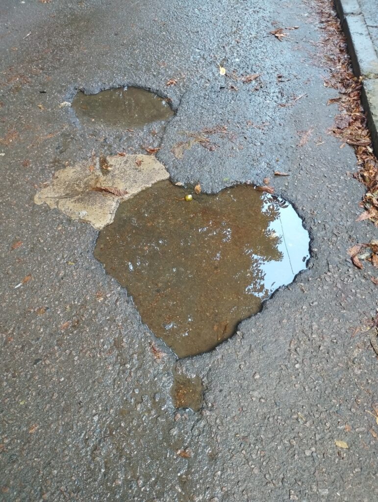 Пригадуєте Довженка? Та це я пригадую і зорі, і Довженка. А водії на ті зорі в цій незручній і підступній калюжі нецензурно лаються. Особливо ті, котрі потрапляють у те серце з розгону зненацька, не знаючи добре особливостей цієї дороги.