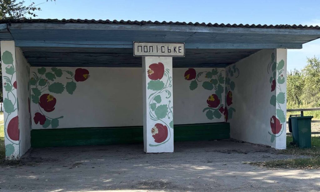 У центрі села Поліське громади завдяки спільним зусиллям оновили зупинку громадського транспорту.