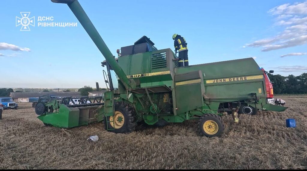 Ввечері 10 серпня поблизу села Грем’яче Острозької громади під час змолочування зерна загорівся комбайн John Deere.